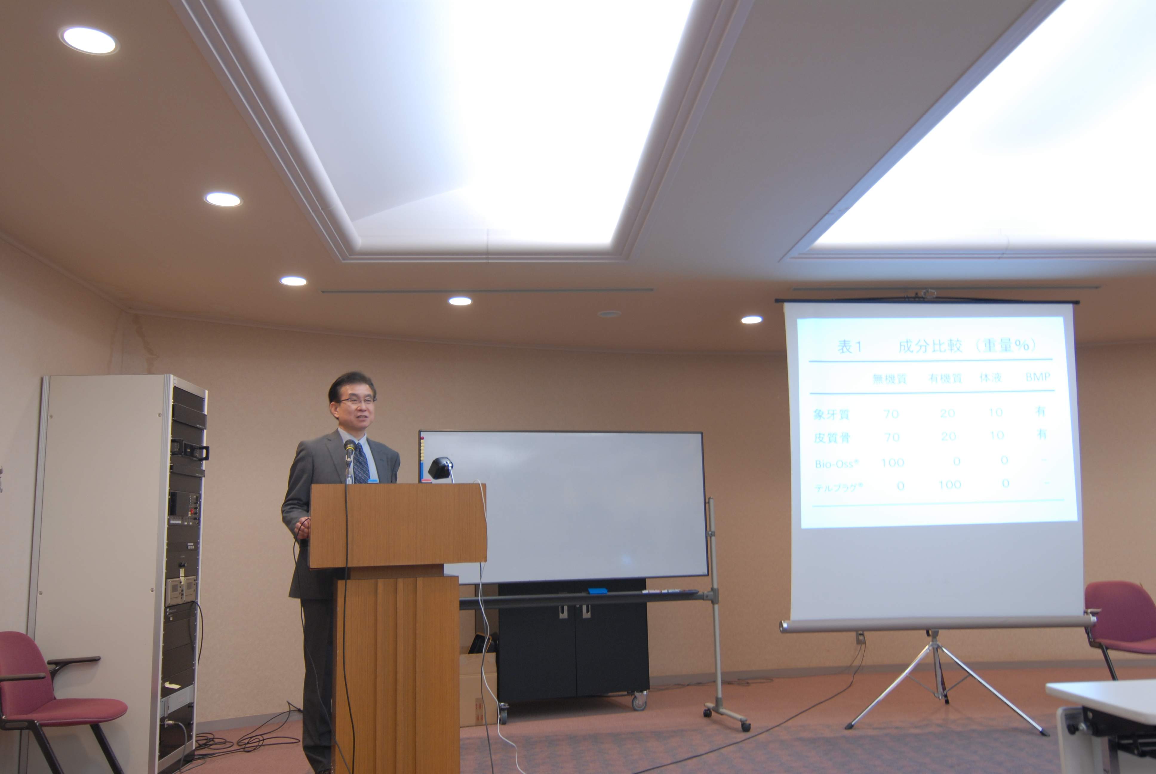 31 January 平成28年新春講演会 平成28年1月31日 北海道歯科医師会館にて北海道医療大学の村田先生をお招きして新春講演会を行った。本日は昨日とは打って変わって、「よく学べ」。村田先生のご講演を聴いて、インプラントロジストにとっては避けて通ることができない骨造成の概念が大きく変わった気がする。骨肉芽の活用、抜去歯を使った骨造成、3D構造を持った人工骨の知識等々、研究と臨床の両方に携わっておられる村田先生ならではのご講演をいただいた。本当にためになる3時間でした。 歯根粉砕器が欲しい!!