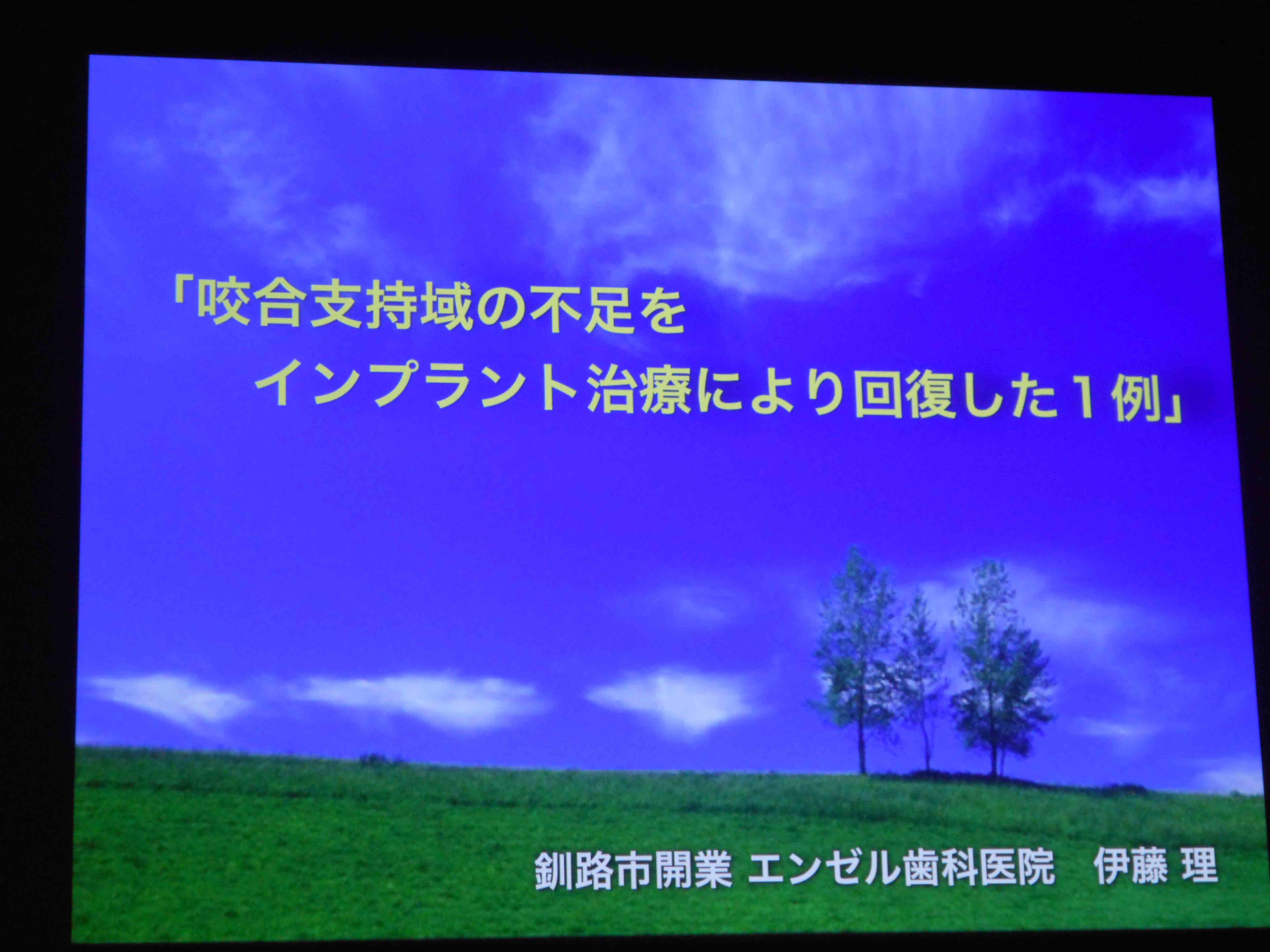 03 July 京セラ コロキウム 前日の近未来オステオインプラント学会総会/学術大会から一夜、今日は京セラメディカル主催のコロキウム。光栄なことに、毎年北海道支部から演者が選出されています。本当にすげ〜〜ことです!!! 今年は前年総会演者だった釧路の伊藤先生が一般発表で、そして北海道支部長の高橋先生(同じく釧路)がパネルディスカッションのパネラーとして御登壇。伊藤先生は臼歯部の咬合が崩壊したかなり濃い〜〜内容の発表。前年の総会の内容をさらにブラッシュアップされていて見応え十分。高橋先生は今後の超高齢社会を見据えたインプラント治療のあり方を考えた講演。内容がすばらしいこともさることながら、笑いを交えた聴講者を引き込むような見事な講演。さすがです。今後もついていきます。 発表中の伊藤先生。さすがに緊張気味。かまずに良く発表できました。 我が北海道支部長。良く遊びよく学べを自ら実践する生きる手本。 いつもながら熱のこもったすばらしい発表、ありがとうございました。
